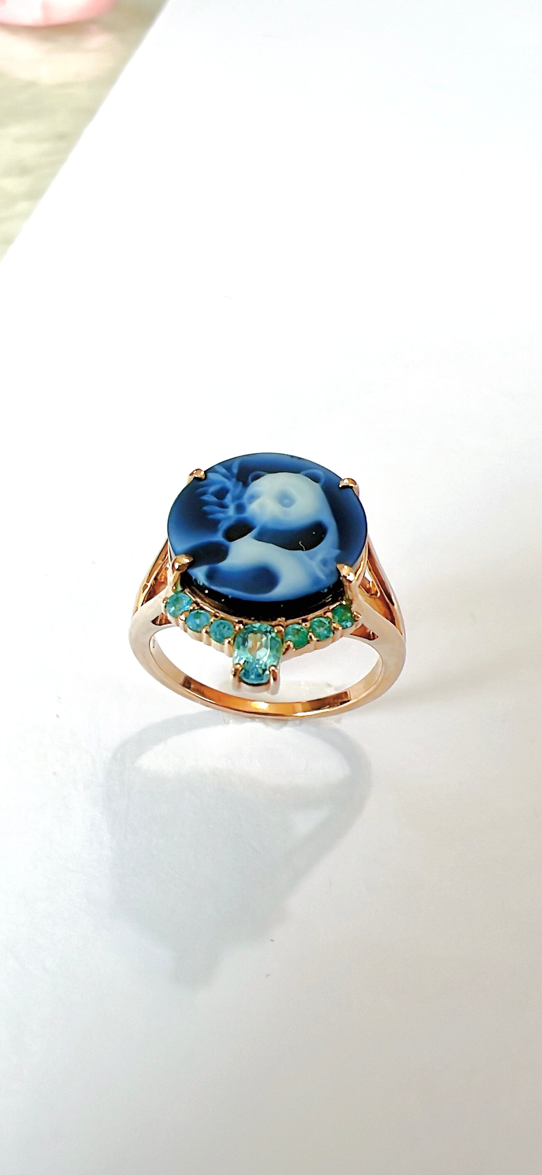 可愛らしいパンダのカメオに パライバトルマリンをつけた リングです K10YG パライバトルマリン0.23 メノウ 11号 ±3 サイズ変更可 ¥165000→ 120000税込